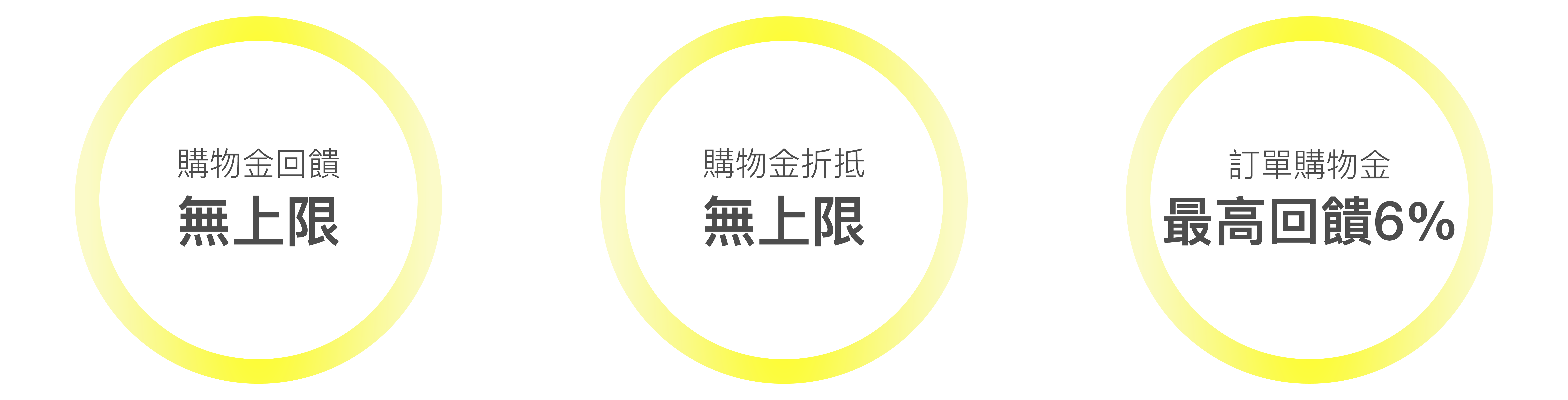 快加入會員,一起享有每筆訂單購物金最高回饋6%,現金折抵直接無上限!