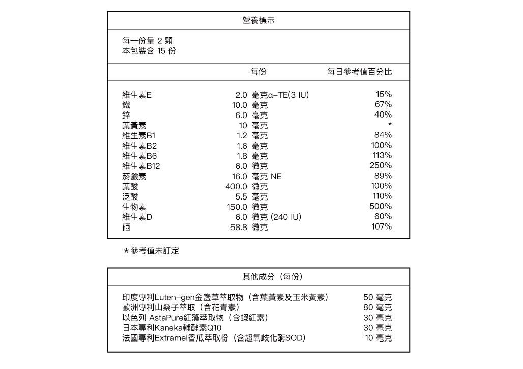 。奢選各國專利原料 葉黃素 x 蝦紅素 x 酵母B群及更多