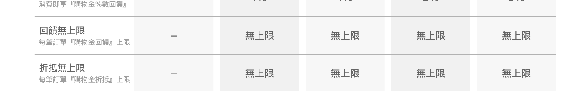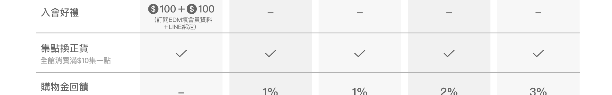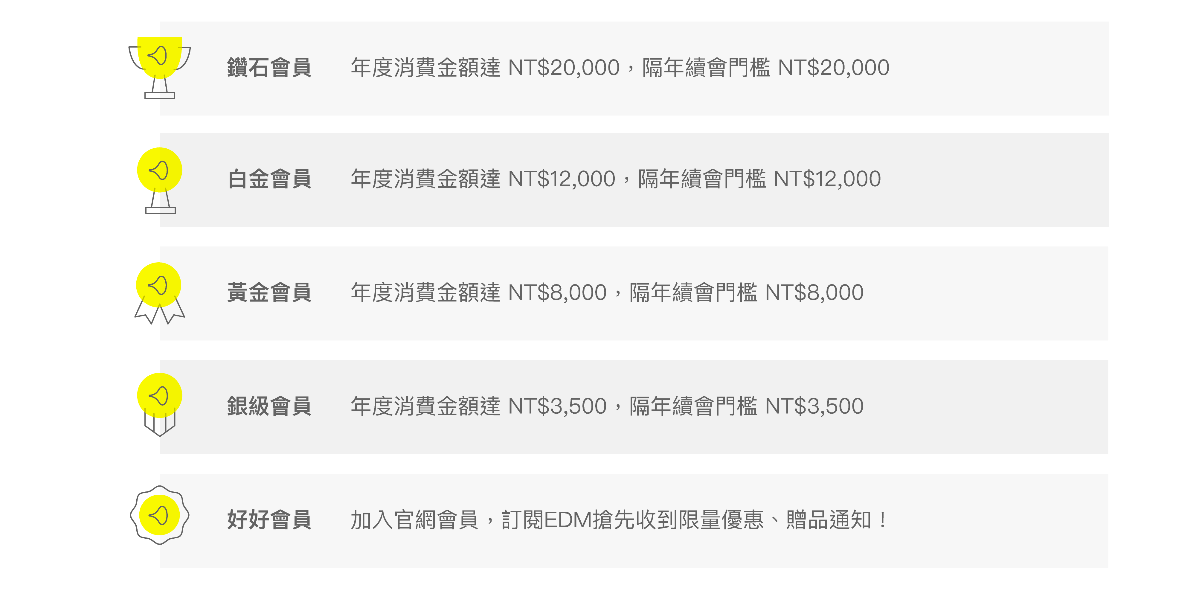 註2:若取消訂單退款後累計金額未到等級門檻,將依實際累積消費金額,調整為相對應的會員分級。