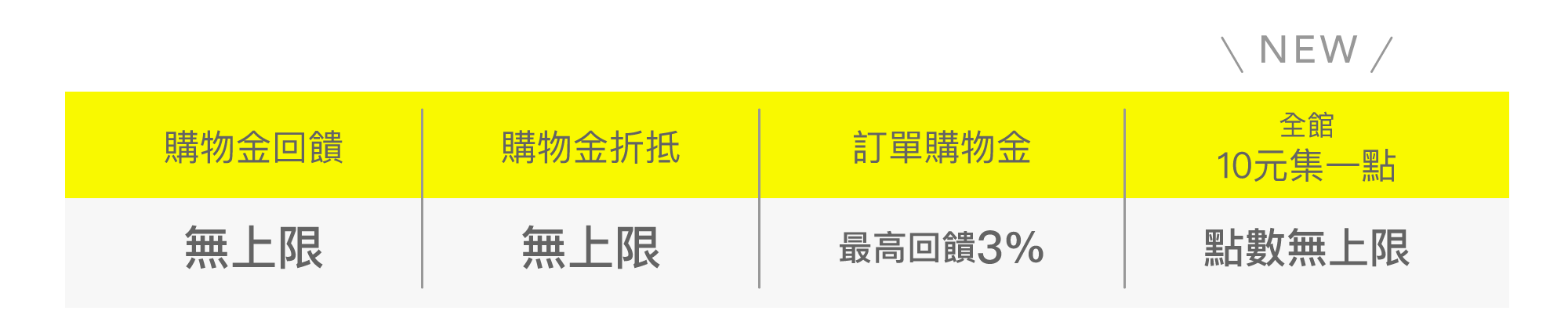 註1:實際消費金額以官網每筆購物車之(扣除運費後)訂單金額結算。